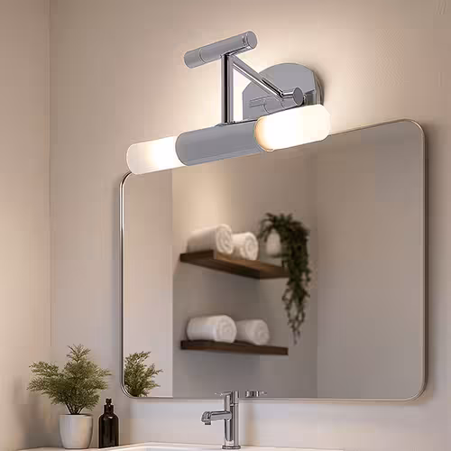 Ces lampes sont montées à gauche et à droite du miroir. Elles produisent un éclairage équilibré et sans ombres des deux côtés - parfait pour se maquiller ou se raser. En même temps, elles créent un encadrement visuel du miroir.