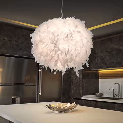 Lampe à suspendre design avec abat-jour à plumes en blancDelai de livraison 1-3 jours ouvrables- 38%