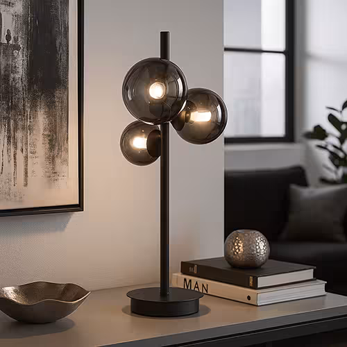 Lampe de table LED, noir, boules en verre fumé, H 48 cmDelai de livraison 1-3 jours ouvrables- 20%