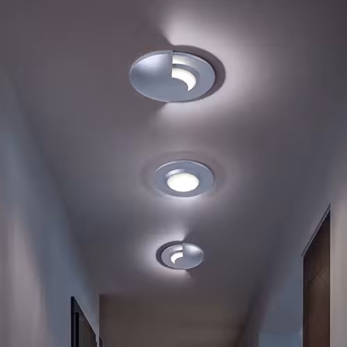 Vous rentrez chez vous le soir et ne voulez pas chercher l'interrupteur dans l'obscurité ? Dans un couloir long et étroit, des spots encastrés dans le plafond assurent un éclairage uniforme et une lumière agréable grâce à leur disposition judicieuse le long du couloir. Ainsi, toute la zone est claire et accueillante et chaque client se sent le bienvenu.
