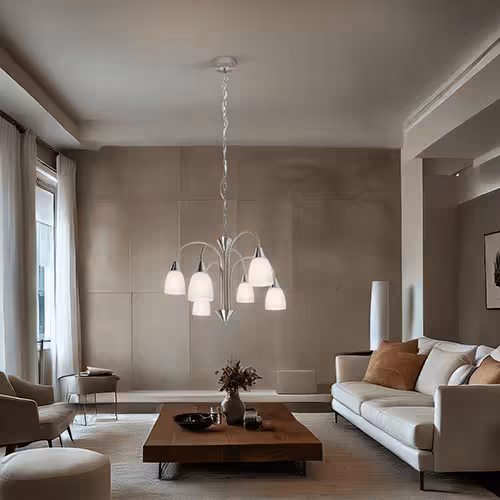 Lustre à LED, nickel, verre 6 flammes, H 150 cmDelai de livraison 1-3 jours ouvrables