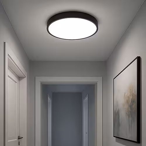 Les plafonniers constituent la base de tout éclairage de couloir. Elles diffusent une lumière plate qui n'éblouit pas et ne fait pas d'ombre. Qu'ils soient ronds, carrés ou plats, les plafonniers modernes s'intègrent discrètement dans le plafond. Ils conviennent parfaitement aux pièces basses et assurent une vision claire. Les modèles dotés de la technologie LED, en particulier, offrent un éclairage agréable et permettent d'économiser de l'énergie au quotidien.
