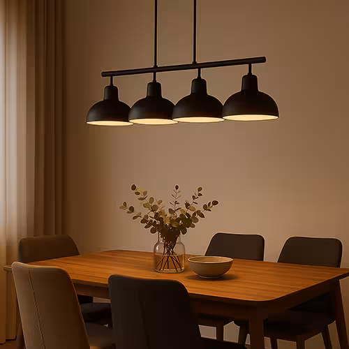 Les lampes suspendues avec plusieurs points lumineux ou une forme allongée conviennent particulièrement bien. Elles assurent un éclairage uniforme.