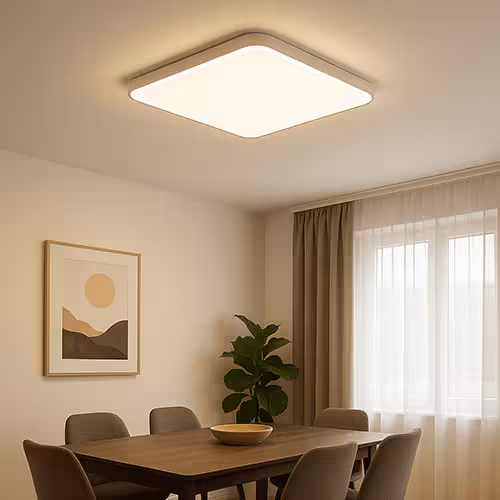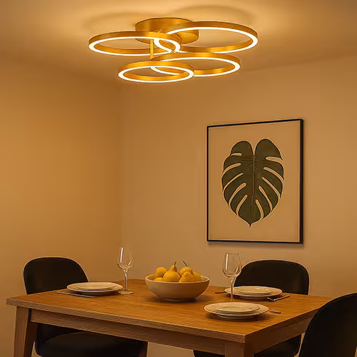 Plafonnier de salle à manger : les plafonniers sont idéaux pour un éclairage de base uniforme. Elles couvrent l'ensemble de la pièce et créent une ambiance lumineuse et conviviale.