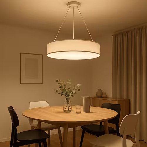 De nombreuses lampes suspendues sont réglables en hauteur. Cela facilite non seulement l'adaptation à la taille de la table et à la hauteur du siège, mais aussi aux différentes utilisations de la pièce. Certains plafonniers disposent également de suspensions flexibles ou de systèmes télescopiques.