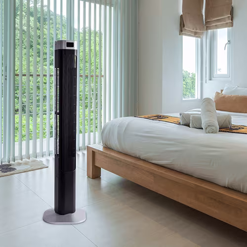 Design élancé, performance efficace. Les ventilateurs à tour se glissent dans tous les coins et fonctionnent de manière particulièrement silencieuse - idéal pour une utilisation dans la chambre à coucher.