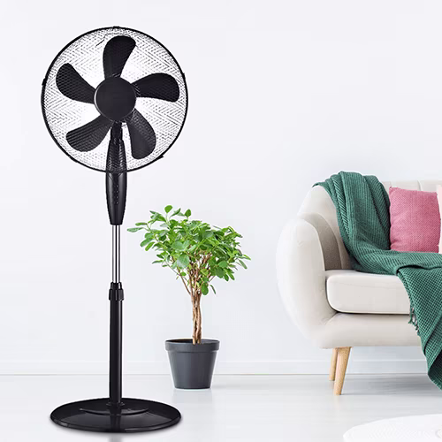 - Ventilateurs de table et ventilateurs sur pied : Toujours les orienter de manière à ce que le flux d'air arrive directement sur la personne. Idéal pour les postes de travail, les coins de canapé ou à côté du lit.