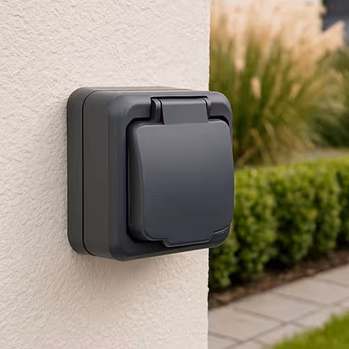 Une prise extérieure avec des clapets de protection, des joints et un boîtier robuste (au moins IP 44, mieux IP 65) résiste à la pluie, à la neige et aux éclaboussures. Votre alimentation électrique reste protégée - à tout moment.