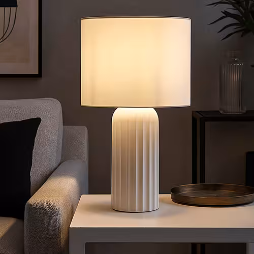 Lampe de table pratique en céramiqueDelai de livraison 1-3 jours ouvrables- Lampe de table, céramique textile, blanc, H 30 cmDelai de livraison 1-3 jours ouvrables